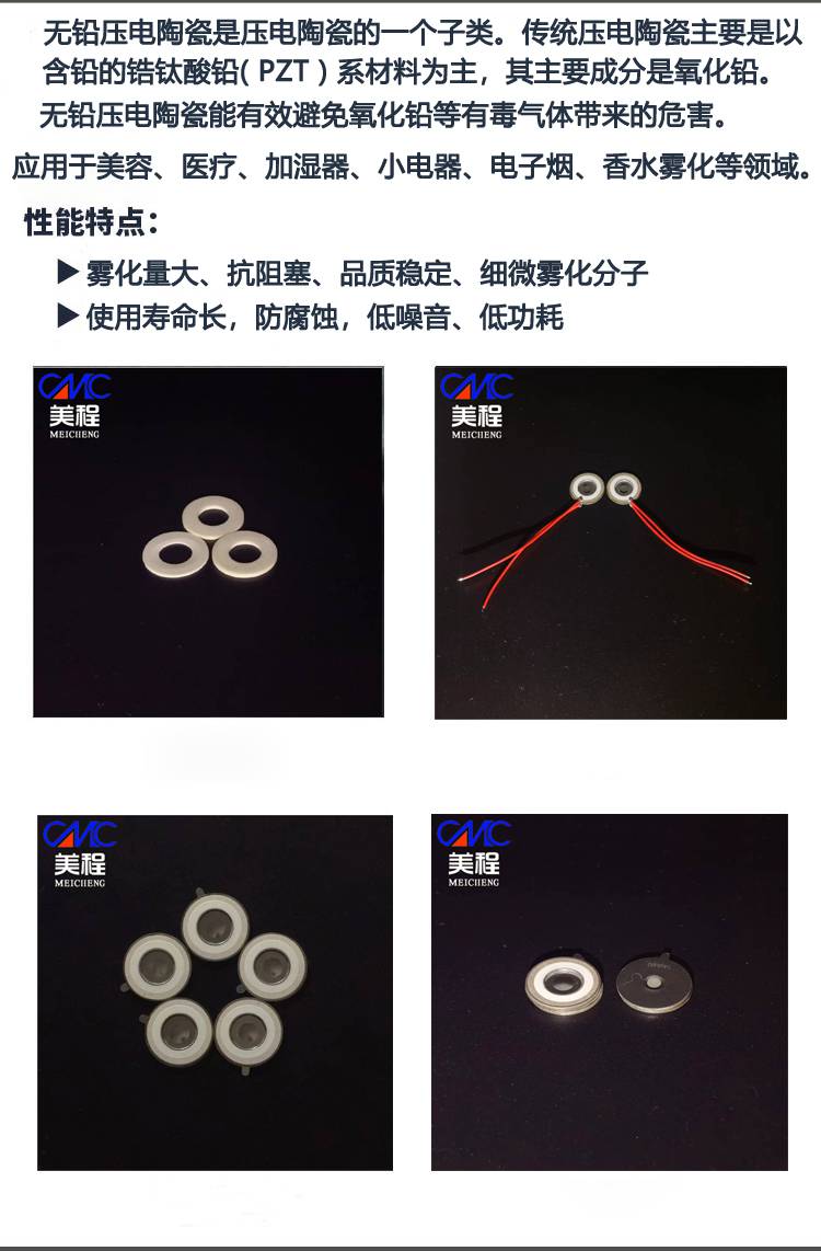 本页信息为湖南省美程新材料科技股份有限公司为您提供的"氧化铝电子陶瓷圆片 无铅压电雾化片 加湿器微孔 湖南美程"产品信息,如您想了解更多关于"氧化铝电子陶瓷圆片 无铅压电雾化片 加湿器微孔 湖南美程"价格、型号、厂家请联系厂家,或给厂家留言。 进入店铺