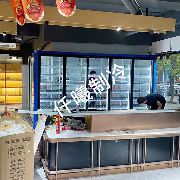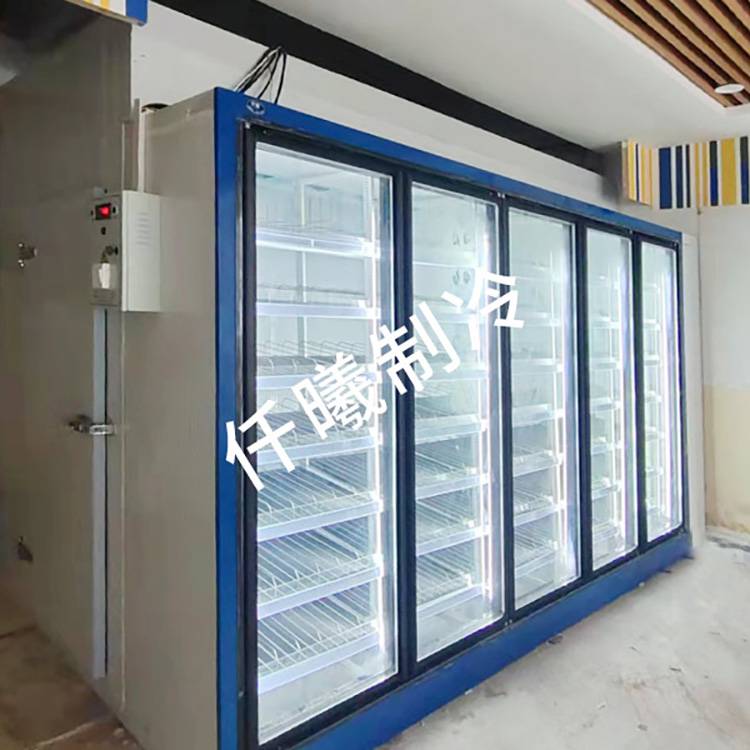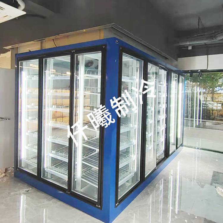 人可入内操作。 后补式展示冷库专为大型超市及便利店所专用,它的设计优点为仓储及展示于一体,侧面有发泡保温门进入库内补货,前面有钢化镀膜中空玻璃门,方便顾客选货,经由前补的方式,库内食品不会出现长时间保存而变质的现象,商品新鲜,顾客满意,商家赢利;采用冷风机吹风制冷,库内温度均匀,降温迅速;调节式货架可根据不同用户需要任意调节高度。设备的关键元器件均采用了国内外***,如此配置确保了整个制冷系统传统的冷库只有销售货架和库门,顾客取货和理货异形展示员补货、理货时共用一扇库门,便利店冷库易造成对顾客取货的影响.实用新型的,具有一个冷藏室.后补冷库冷藏室的正面区域安装了一组真空防雾玻璃门,在冷藏室的前半部设置有销售货架,后补冷库在冷藏室的后半部设置有补货货架,在销售货架和补货货架之间设置有理货通道,冷藏室侧面开设有补货门。