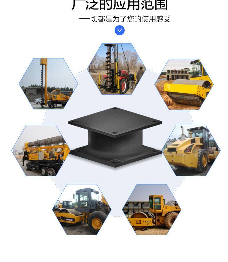 橡胶垫块适用于铁路、公路、建筑、汽车、电子、造船、石油、化工、冶金、医药、机械、家电、农机等行业,几乎涉及生产、生活的各个领域。