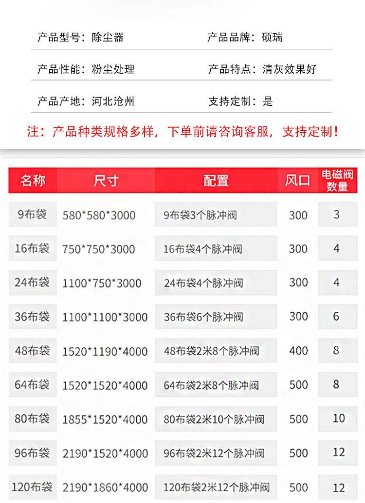 本页信息为泊头市硕瑞环保设备有限公司为您提供的"硕瑞环保 行喷脉冲长布袋除尘器 陶瓷多管锅炉除尘器 锅炉清灰除尘器"产品信息,如您想了解更多关于"硕瑞环保 行喷脉冲长布袋除尘器 陶瓷多管锅炉除尘器 锅炉清灰除尘器"价格、型号、厂家请联系厂家,或给厂家留言。 进入店铺