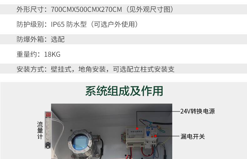 采样距离:标准20米,选配大功率真空泵的采样距离大于40米,如果被测气体的压力比较大,采样距离相应大一些