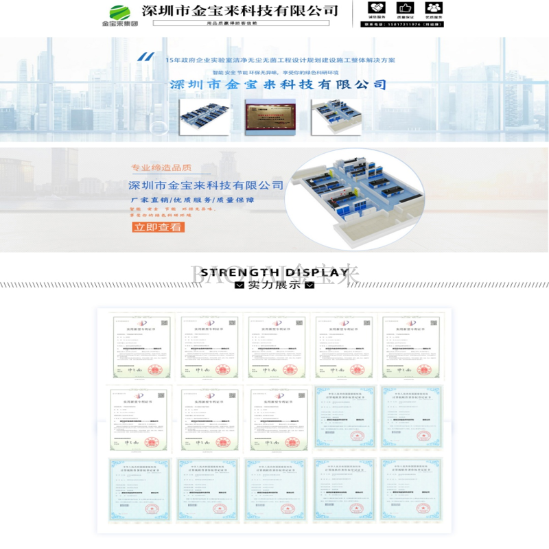 深圳市金宝来科技有限公司(简称:金宝来集团)是一家从事实验室整体设计规划、实验室系统工程施工、实验室设备研发、生产及其配套服务的专业厂商。为医院检验科、微生物实验室、食品检测实验室、石油化工化验室提供实验室建设方案、实验室装修设计、实验室设计图、实验室全套家具、工业设备。公司依托香港来宝集团公司强大的资本、技术和管理优势,以***的营销和规划设计理念、强大的产品整合系统、完善的客户服务体系,为客户提供专业、高品质的一站式服务。 公司成立以来,艰苦奋斗、努力拼搏,用***的产品质量、超出客户期望的服务,孜孜以求的专业精神赢得了企业生存、发展的环境和良好机遇。公司先后投入大量的人力和物力开发生产出了全套的实验室设备产品,尤其是公司在实验室家具通风系统、洁净室无菌室系统的设计和施工方面奠定了行业的专业地位。 ? 占地面积约10000平方米。工厂分设制木、机械、金属和组装四个车间。配备了从新加坡进口的现代实验室***生产线。装备了垂直运输系统、烘房、风压动力系统等专用配套设施和各种***工具,形成了月制造、安装现代实验室装备系列产品达八百万元以上的生产能力,能及时的满足客户所需。 ??公司主要产品包括不锈钢实验台、PP实验室家具、全钢实验台、钢木结构的实验室家具、实验台(仪器台)、天平台、***柜、通风柜、器皿柜、玻璃钢通风柜、气瓶柜、排风试剂柜,以及与实验室相关配套的基础装备。产品设计风格彰显人性化、功能化。可满足实验室不同环境的要求,公司向客户提供全程一站式服务即实验室装修工程、净化工程、通风改造工程、气路工程、气流控制系统工程、生物安全系统工程等各个领域。为客户营造一个功能齐全、安全舒适、绿色环保、全新的实验室立体空间。 ? 绘图制作部:拥有一批高素质绘图设计制作员,在自主研制开发实验室装备绘图的环境下,从事绘图制作处理的工作。由于采用了独特的CAD三维规划设计的制作方式,制作出来的绘图成功率在99.9%以上,完全可以满足不同用户的各种需求。完整、全面地进行实验室布局规划设计,向客户提出合理、完善的建议,努力创造健康、安全、环保、舒适的实验室空间。 我们秉承科技创新、的经营理念,“以质量求发展、以服务创品牌”, 我们有信心为您提供***的实验室系统解决方案,并成为您长期信赖的合作伙伴,共同发展,共创辉煌!金宝来正在向集团化、产业化、规模化、多元化的方向迈进。为了实现更大的发展,我们愿与国内外各界同仁和朋友加强联系与合作,为共创美好明天而继续努力。