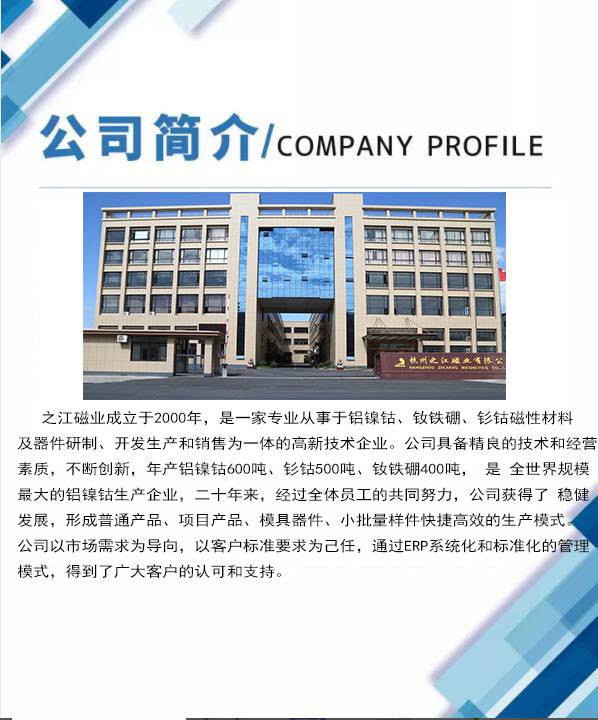 主要生产铝镍钴,钐钴,钕铁硼等永磁磁钢。是生产公司,产品尺寸从0.3x0.3x0.3mm?到300X300X575mm?都可以生产,不仅能配套SpaceX星链卫星发射传感器磁钢,还能配套国内导弹发射传感器磁钢,加工能力非常强大。公司为***企业、浙江省“五个一批”重点骨干企业 和“中国电子元件***企业”,银行评定的信用等级***企业。公司顺利通过了***:2008、***/TS16949:2009质量体系认证、***14001:2004环境体系认证和GJB9001B:2009国军标质量管理体系认证。 旗下系列产品 铝镍钴性能能覆盖Alnico2-Alnico9全系列性能,并且可以根据需要调整产品的剩磁(Br)和矫顽力(Hcj)。 钐钴专精于SMCO2:17性能,性能覆盖YXG22-YXG33全系列,SMCO1:5亦有特殊成果,公司研发了特殊钐钴薄片,应用于继电器可以在800-900V电压下充磁饱和,满足客户使用自动化产线装配。 钕铁硼专精于后道加工和高性能钕铁硼,加工精度可以到达+/-0.005mm,和SpaceX合作的圆环磁钢,已经应用于星链卫星发射。