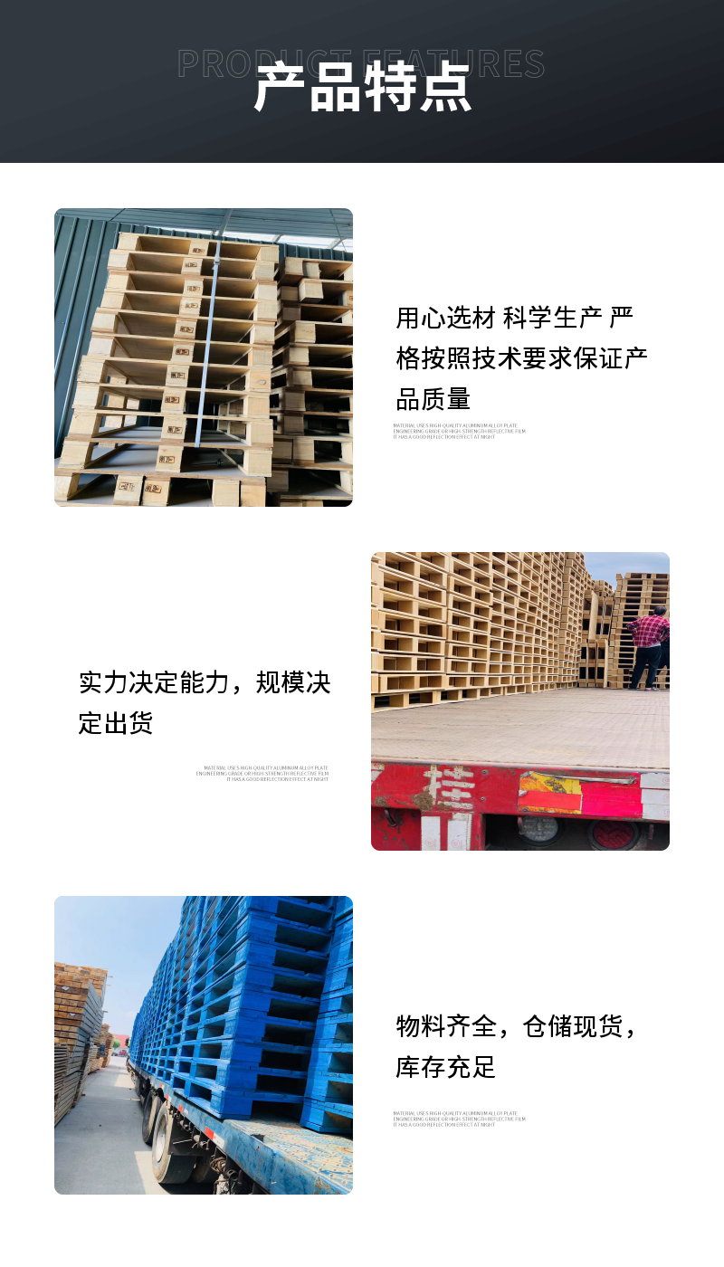 | 木托盘脚墩尺寸:8*8*8cm | 木材特性:坚固耐用耐磨稳定性好 | 木托盘面板尺寸:1.8cm |