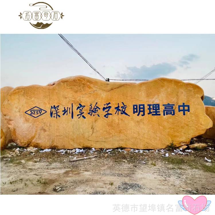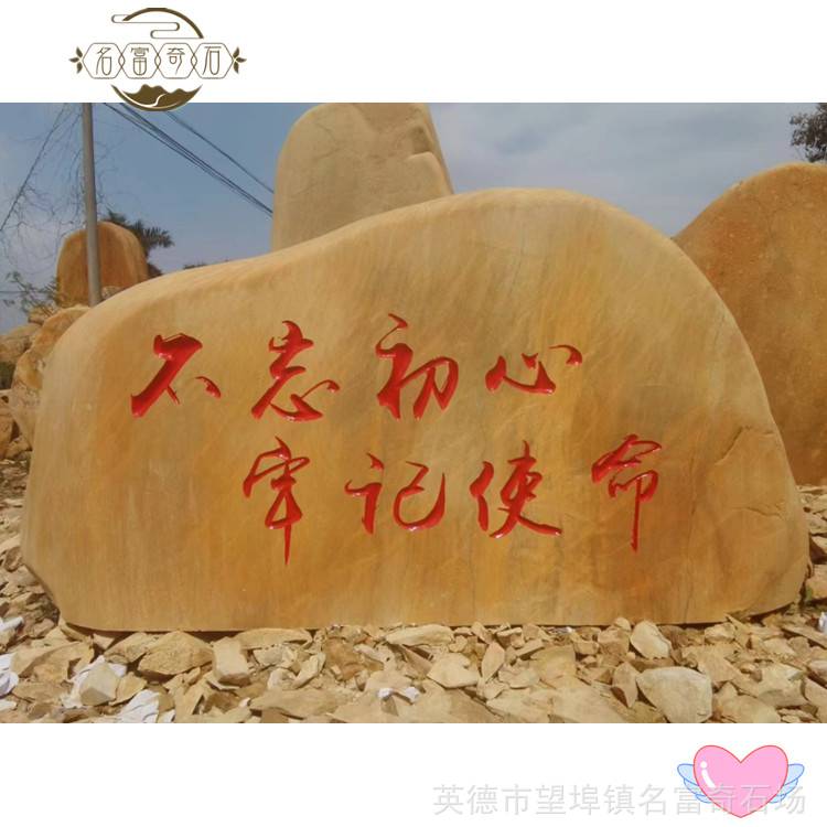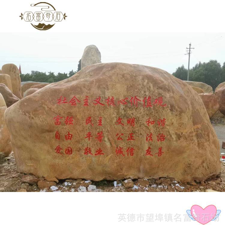 选购石头请联系我们,我们有规格形状不同的石头,会根据你需要的尺寸发图给你选购,或光临现场挑选以往村口没有标识,时常成了外乡人入村问路的一件难事。近年来,推进社会主义新农村建设,乡村面貌焕然一新,很多村庄有如雨后春笋,纷纷在入村路口处树起了醒目的村名标志。各地村庄的村名标志风格虽各有千秋,不少乡村喜欢使用天然黄蜡石制作村名刻字,新潮又好看。方便外乡人望标志轻易入村,也体现出村庄的文化特色,还成了一道亮丽的风景线。