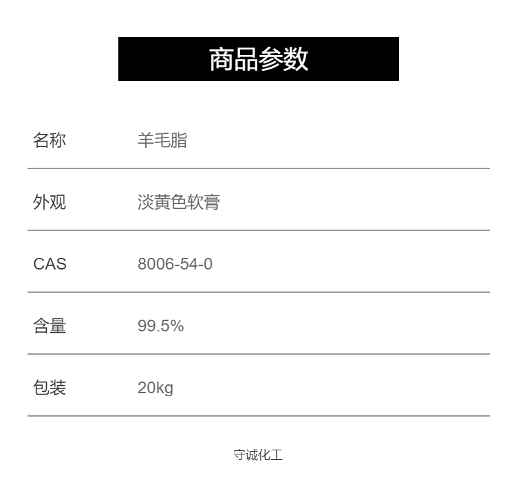 | 品牌:惜今 | 产品名称:羊毛脂 | 产品等级:优级品 |