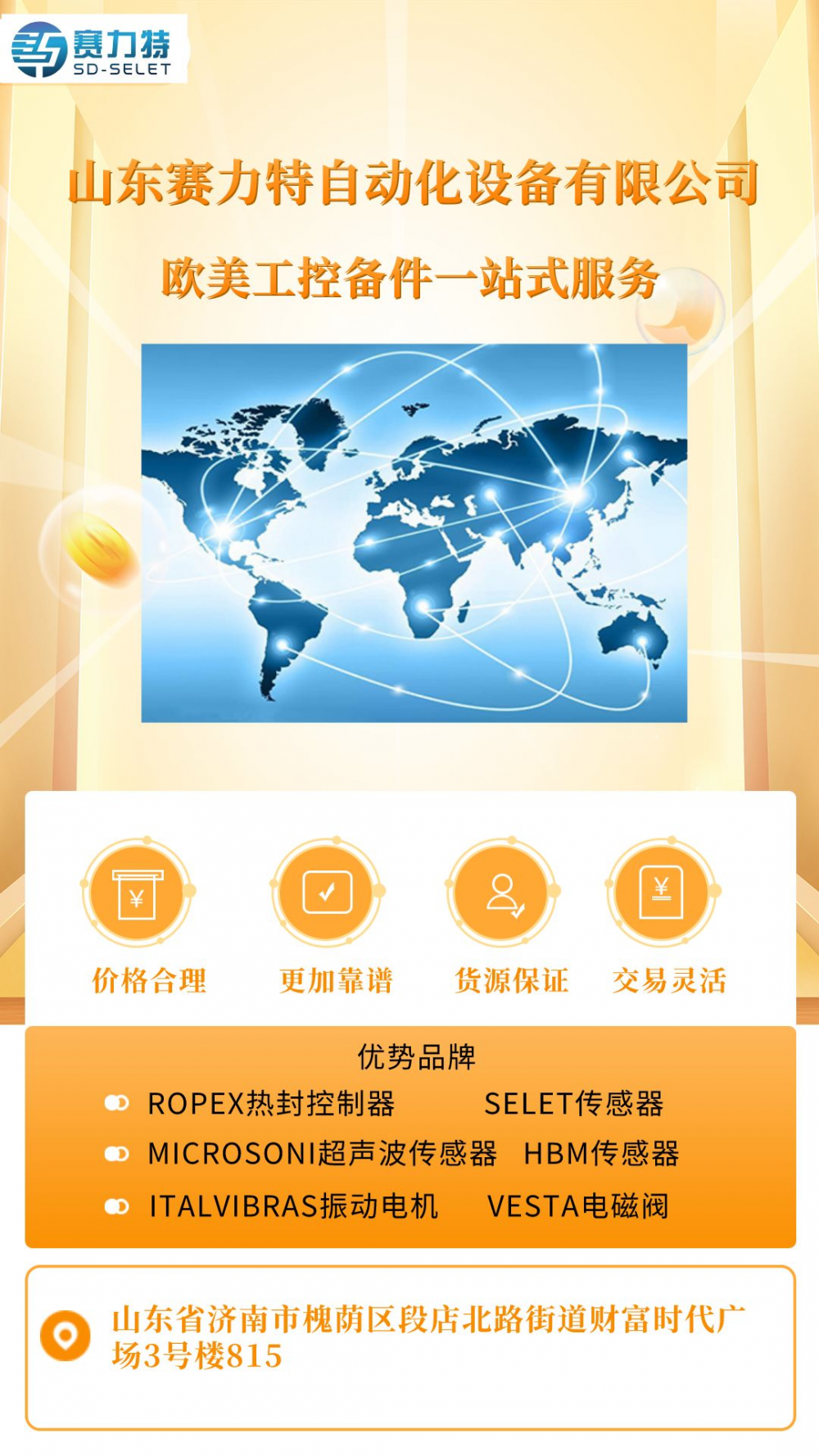 山东赛力特自动化设备有限公司主营德国及欧美电气自动化、机械传动、仪器仪表、泵阀等工业备件,公司有多年进口产品采购经验,致力于低成本,保质量理念为国内客户进口欧美等国家***工控备件,为客户提供进口备件的一站式服务。 公司从国外厂家直接进货,拼箱发货,集中报关,降低运输及中间环节的成本。凭借专业的技术与商务团队,为客户带来优质服务。经过长期积累的采购经验及不懈努力,与几千家世界***生产厂商达成友好合作关系。逐步积累了在工控自动化领域关于货源渠道、价格、货期、服务等各方面的优势,从而奠定了行业的地位。 我们所进口国外产品广泛应用于光伏、海洋船舶、造纸、钢铁、电力系统、石化、食品、环保、能源、汽车等领域,帮众多客户有效节省了物流成本,***货期的稳定,避开繁琐的中间环节,给客户提供更多优惠。 我们凭借多年的积累和对自动化设备及备件的不断学习与认识,目前我们资料库中已有超过成千上万个国外品牌,合作品牌也已达成百数千个,目前资料仍在不断扩充中,只要您能提供产品的品牌、型号、数量、铭牌照片等信息,只要不是特殊定制产品,我们大部分都可以为您提供报价与采购,节约成本和您宝贵的时间。 我们会尽的努力,争取合理优惠的产品价格,较短的供货周期以及专业的服务,真正做到互惠互利,共同发展。 我们***,不论报价高了或者低了,我们所提供的产品均为原厂正品,正规渠道采购,可提供报关单,厂家出货单等,我们不做二手,不做翻新,合理的价格,优质的服务是我们的宗旨。