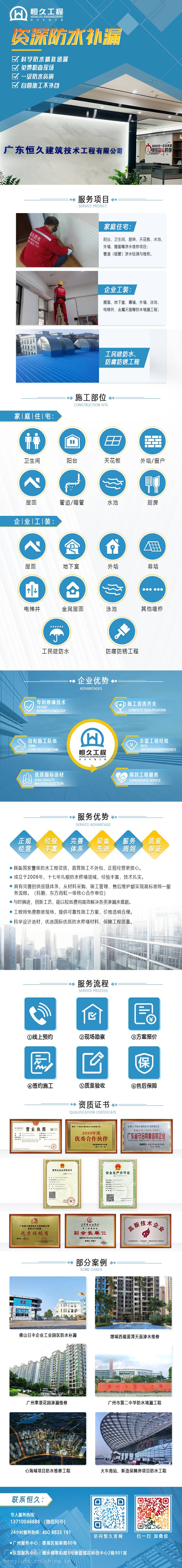 广东恒久建筑技术工程有限公司成立于2006年05月,注册资本贰仟陆佰捌拾元整。拥有防水防腐保温工程承包一级资质,建筑装修装饰工程承包二级,建筑工程施工总承包三级等多种资质。是一家集防水补漏、结构补强、加固为一体的技术工程公司,恒久公司拥有员工超过70人,2020年年销售额突破3000万元。经过14年的艰苦奋斗,恒久公司施工总面积已超1000万平方。 恒久公司与多家企业保持着密切的合作关系,部分合作企业有:碧桂园、恒大地产、万科地产、珠海华发地产、地产、广汽丰田、广州金辉建设、广东协强建筑、广东永盛建筑、电自二建、伟隆地产、东莞建工、百汇地产、广东天宇等 恒久公司的销售体量,与国内各大防水材料品牌皆有合作。2016年国内***大防水材料品牌“科顺”与恒久公司签定战略合作协议;2017年国内***大防水材料品牌“东方雨虹”与恒久公司签订合作协议;2018年国内第三大防水料品牌“宏源”与恒久公司签定合作协议。 公司拥有工程设计师、造价师、会计师等各类人员,拥有各式施工机材和强大的技术队伍。公司设有广州、茂名、惠州、河源、粤东六个办事处。施工队伍强大,拥有五个施工队,施工人员和机械操作人员均有多年实践经验和经过严格的上岗培训。 公司前身为1992年成立的久防水施工队施工队,在多年的施工中不断***,总结出宝贵的工作经验,并在实践中不断发展壮大。公司创建后,在东莞、广州、深圳、佛山、惠州、珠海、中山、江门、汕头、阳江、茂名等地区承接各类大型性宅小区、火车站、大型建筑、地下室、路桥等建筑物防水、防腐补强工程。 从恒久工程队90年代施工的韩国三星电机厂、东莞职业技术学校到阳江广东海上丝绸之路博物馆、惠东碧桂园十里银滩项目、广州芳村花园小区,恒久人经过多年探索和实践从东莞走向全国,得到越来越多客户的认可,从每年几个项目到现在年施工近百个项目