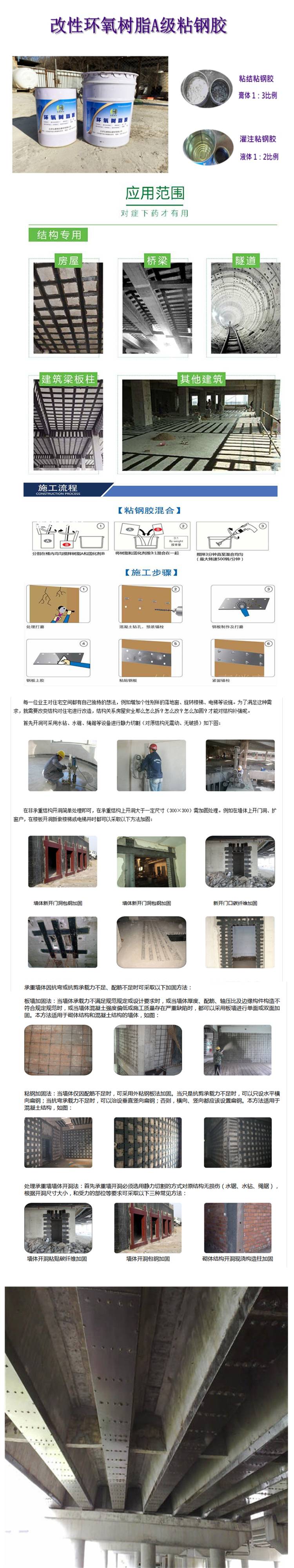1、主要用于混凝土粘贴钢板加固及旧混凝土构件之间粘结。