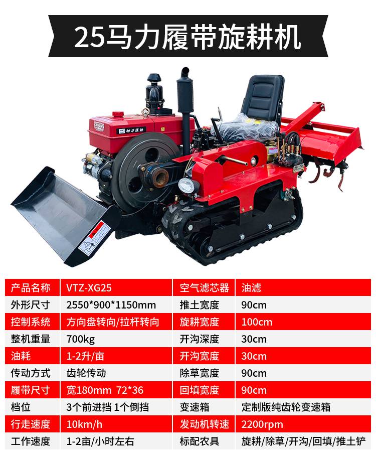 自走式果园施肥开沟机履带行走管理机25马力乘坐式履带旋耕机