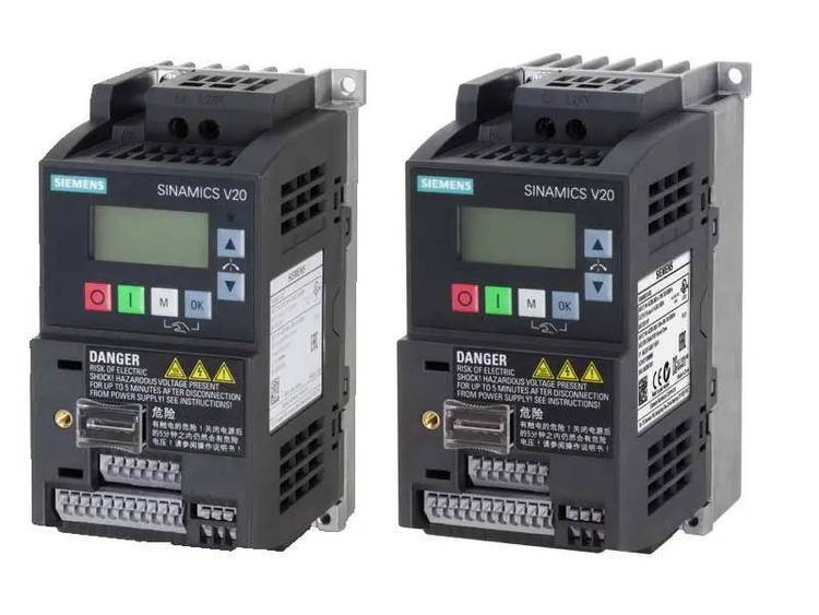 SINAMICS V20 200-240V 1AC -10/+10% 47-63Hz 标称功率 0.37kW 有 60 秒 150 % 过载 未过滤 I/O:4 DI,2 DO,2 AI,1 个模拟输出 现场总线:USS/MODBUS RTU 安装有基本操作面板 保护:IP20/ UL 开放 尺寸:AA 68x142x108(宽x高x深)