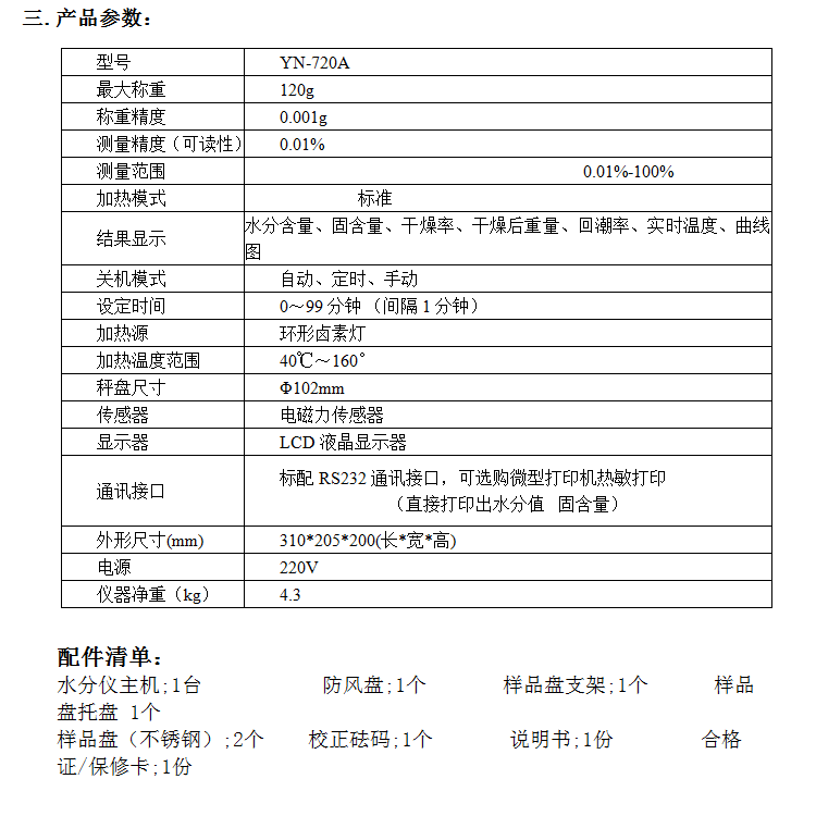 | 品牌:南粤 | 型号:YN-720A | 类型:卤素水分计 |