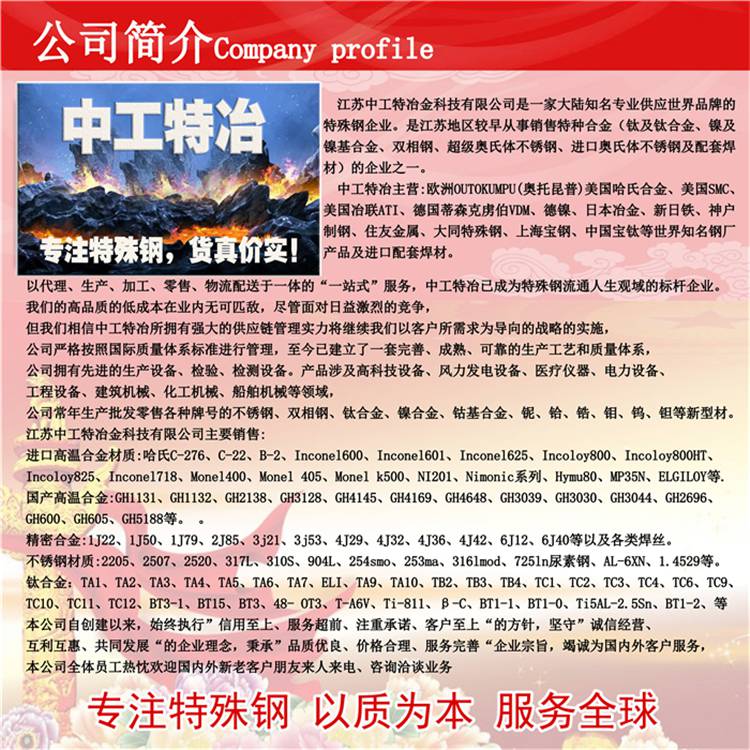 | 用途:石化、机械、食品加工、阀门、海洋设备等 | 规格:齐全 | 品牌:中工特冶 |