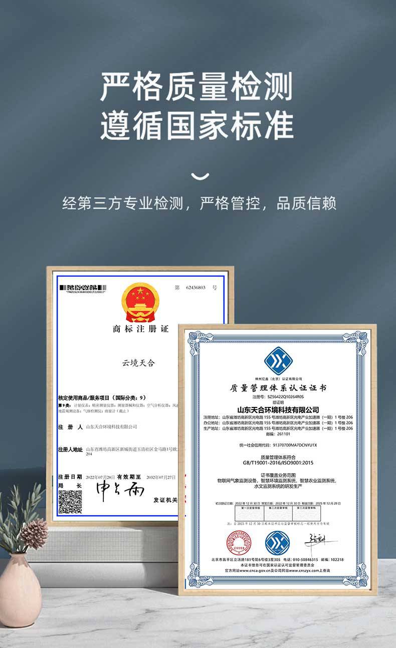山东天合环境科技有限公司是一家致力于气象环境监测系统的研发、生产、销售、服务于一体的高科技企业,公司总部位于山东省潍坊市。目前,公 司已具备批量生产系列化的自动气象与环境监测站、各类探测传感器、及维护保障设备等的能力,产品已被广泛应用于气象、林业、农业、科研、大中院校等众多领域,并保持着良好的客户口誉。 山东天合环境科技有限公司在气象站研发生产领域具有多年的经验,经过多年运营发展,形成了强大的产品研发团队、流水线 式生产团队、售后服务团队。天合环境科技始终坚持以市场为导向,以质量为根本的原则,开发出具有自主知识产权的气象与环境仪 器。用户涵盖全国的气象、矿业、农业、林业、水利水电、畜牧、植物保护等领域,获得广大用户一致好评。