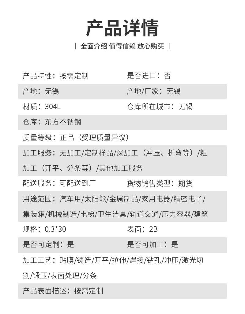 | 规格:0.3*30mm | 表面:2B | 是否可定制:是 |