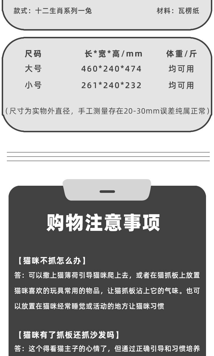 十二生肖兔 宠物抓板定制 超大猫抓板瓦楞