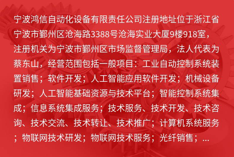 | 登记机关 | 宁波市鄞州区市场监督管理局 | 法定代表人 | 蔡东山 |