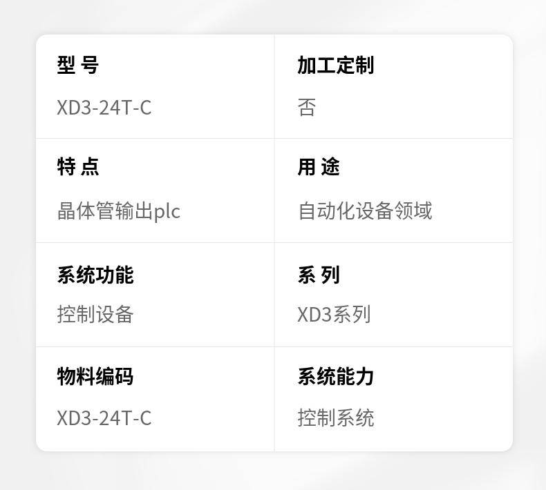 | 系列:XD3系列 | 物料编码:XD3-24T-C | 产品认证:CE |