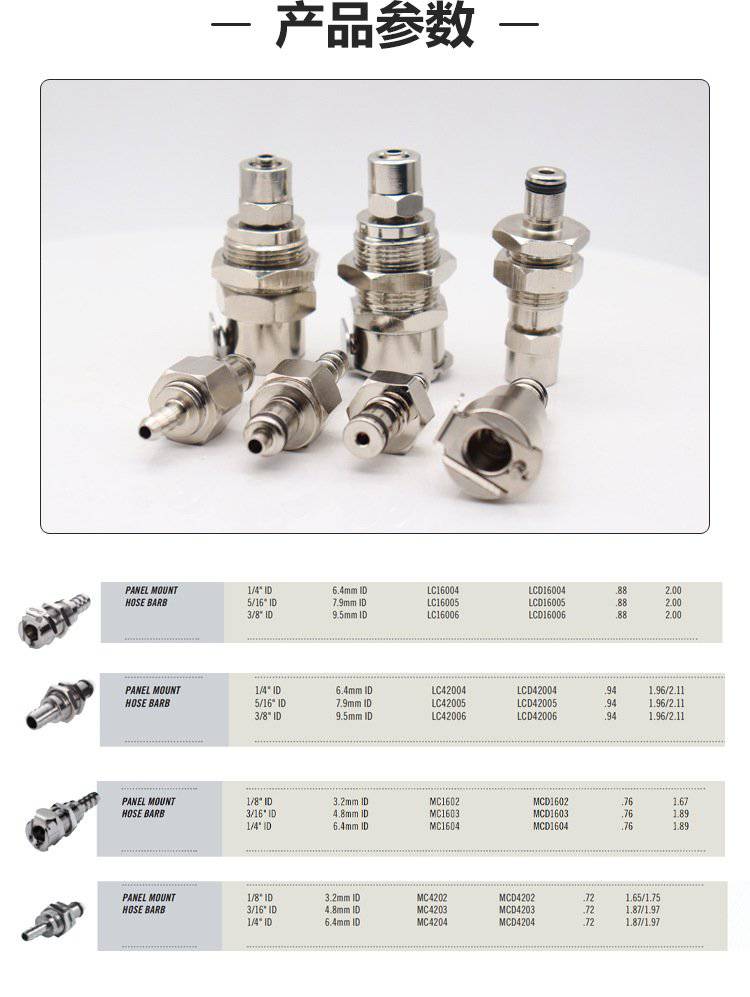 高耐磨公母金属流体管路连接CPC型穿板快拧LCD16004 MCD1602 可定制