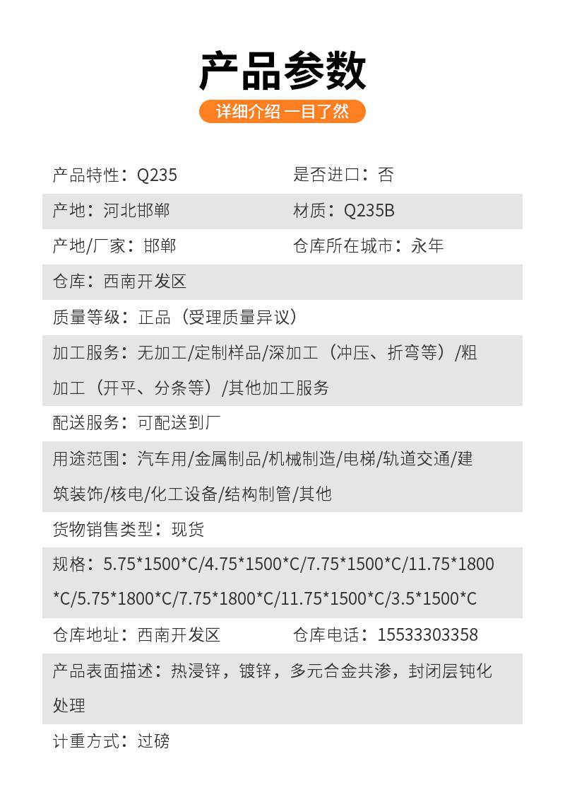 | 材质:Q235B | 产地/厂家:邯郸 | 仓库所在城市:永年 |