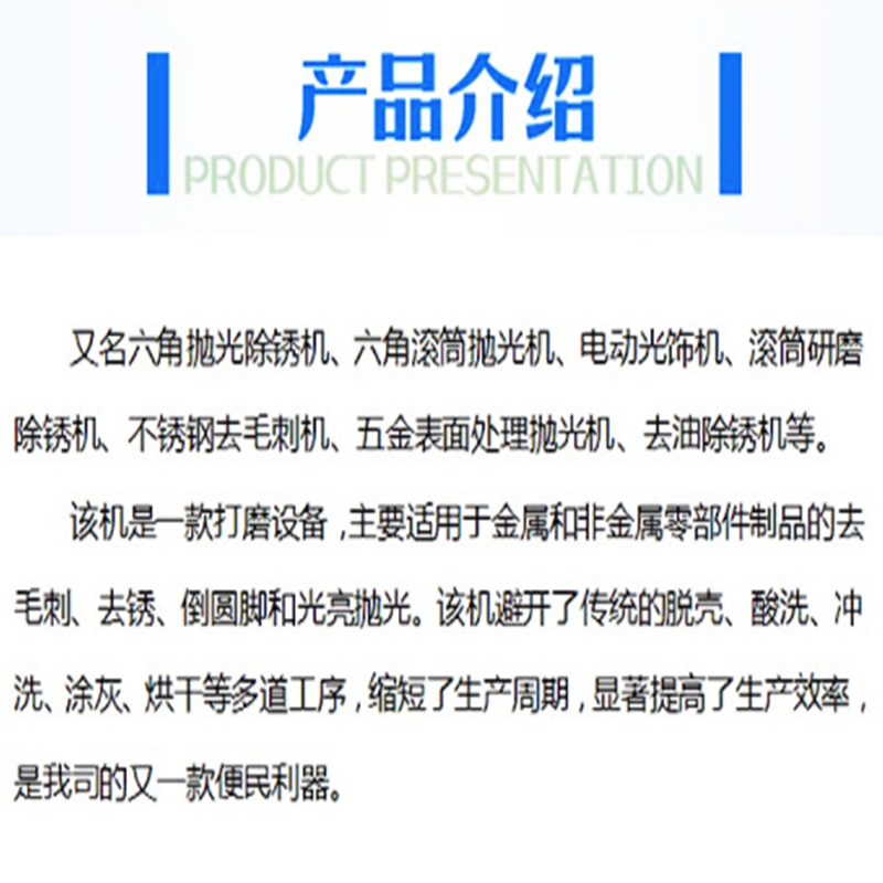 本页信息为曲阜市陈氏机械厂为您提供的"300升六角滚筒抛光机 研磨除锈去毛刺机 金属五金除锈打磨机"产品信息,如您想了解更多关于"300升六角滚筒抛光机 研磨除锈去毛刺机 金属五金除锈打磨机"价格、型号、厂家请联系厂家,或给厂家留言。 进入店铺
