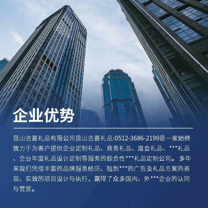 昆山吉嘉礼品有限公司 昆山吉嘉礼品:0512-3686-2199是一家始终致力于为客户提供企业定制礼品、商务礼品、展会礼品、企业年度礼品设计定制等服务的综合性礼品定制公司。 多年来我们凭借丰富的品牌服务经历、独到的广告宣传及礼品方案的表现、实效的项目设计与执行,赢得了众多国内、外知名企业的认同与赞赏。特别是在定制礼品领域与众多国内外企业建立了长期、深度合作,积累了丰富的品牌建设及定制礼品服务经验。 我们始终以为客户提供独到、实用***方案为使命。以“创意伙伴”做为商业定位,与众多行业客户建立了长期的品牌设计、执行等战略伙伴关系。 我们秉持努力打造服务为信念,借以对企业、品牌、市场、文化与设计的独到和深层理解,以量身打造的理念为客户提供迎合市场需求及体现企业精神的服务。我们力争成为企业打造品牌的忠实伙伴。 我们始终坚持求质量、讲信誉、努力开发新产品、力求让顾客满意!