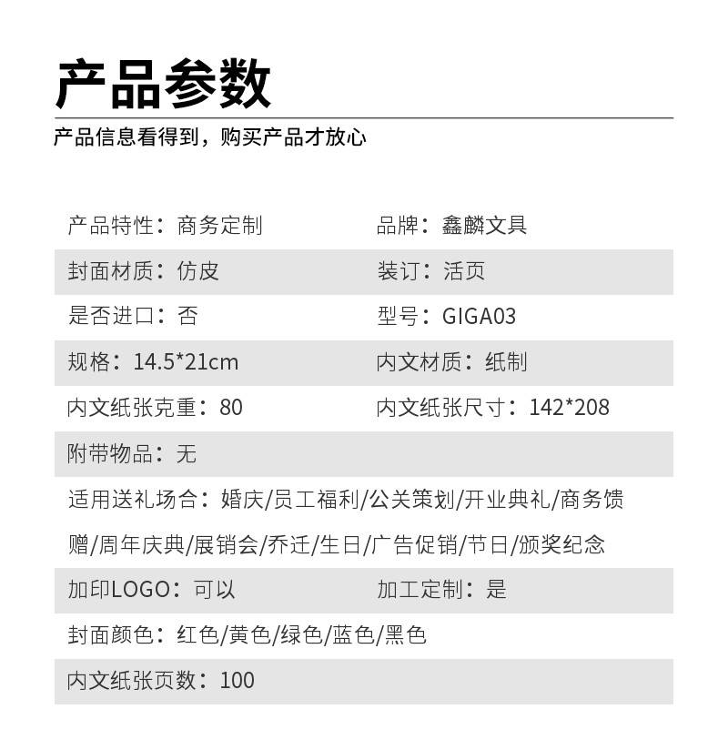 | 产品特性:商务定制 | 品牌:鑫麟文具 | 封面材质:仿皮 |