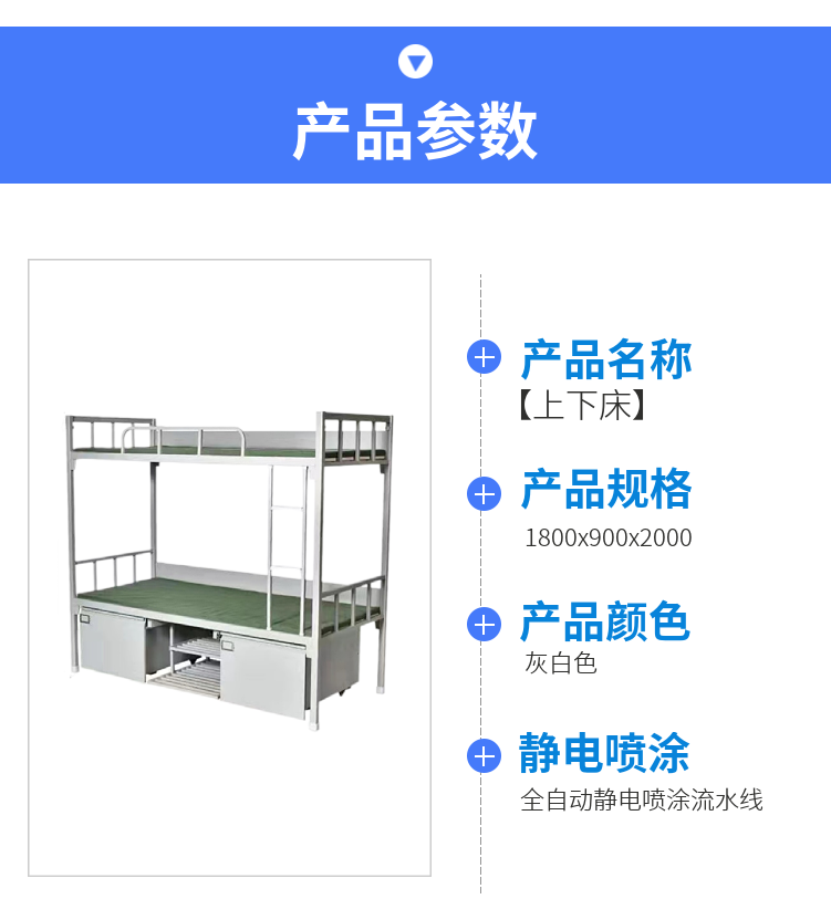 | 产品名称:上下床 | 使用场景:学校/工地 | 表面处理:喷漆 |