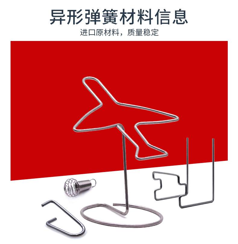 异形弹簧:与常规弹簧稍有区别就是弹簧本身是不规则的,有弯曲和多复杂的角度设计·而制造加工手艺也是相对有要求,设备也是比较有要求·是电脑机绕制·因绕制角度多,折弯多,所以生产速度慢。