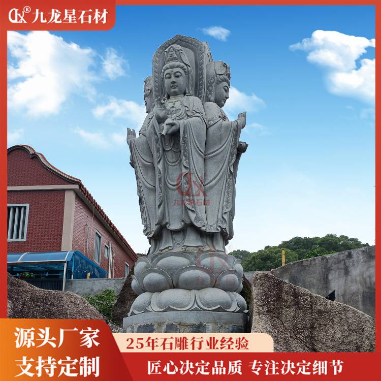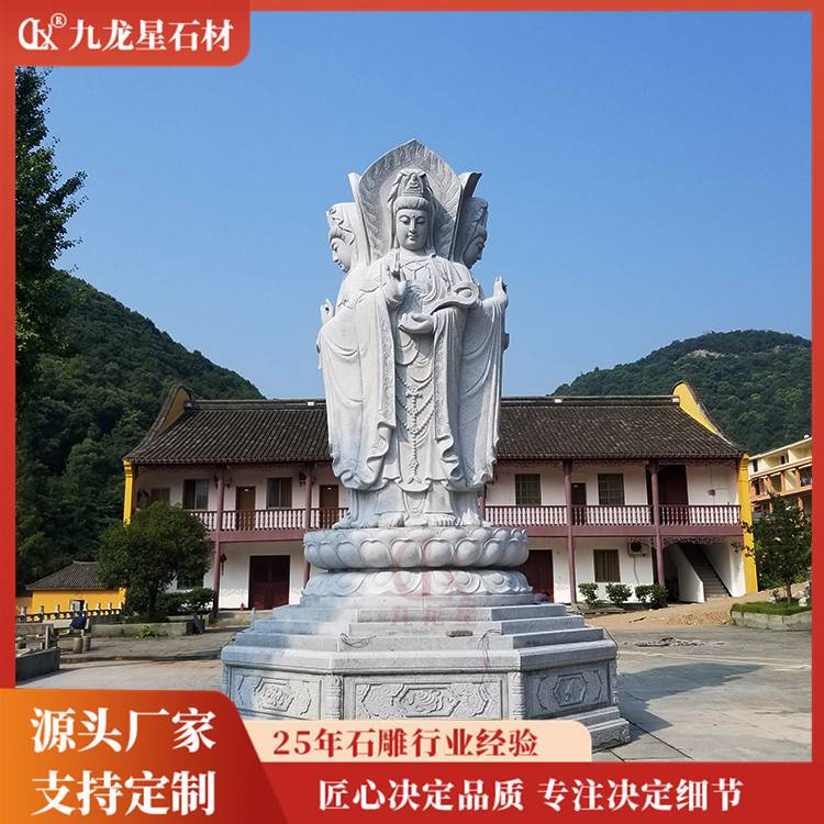 石刻花岗岩观音雕塑 大型三面石雕观世音像定制