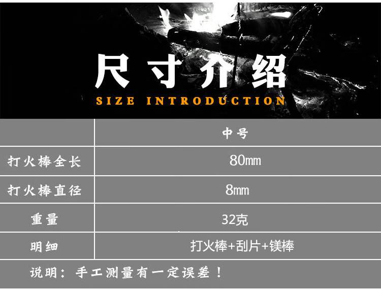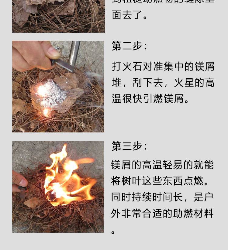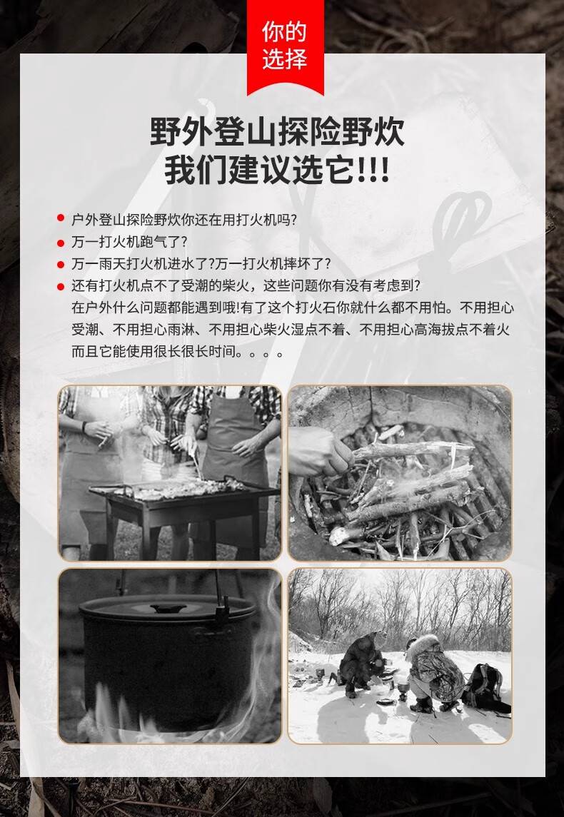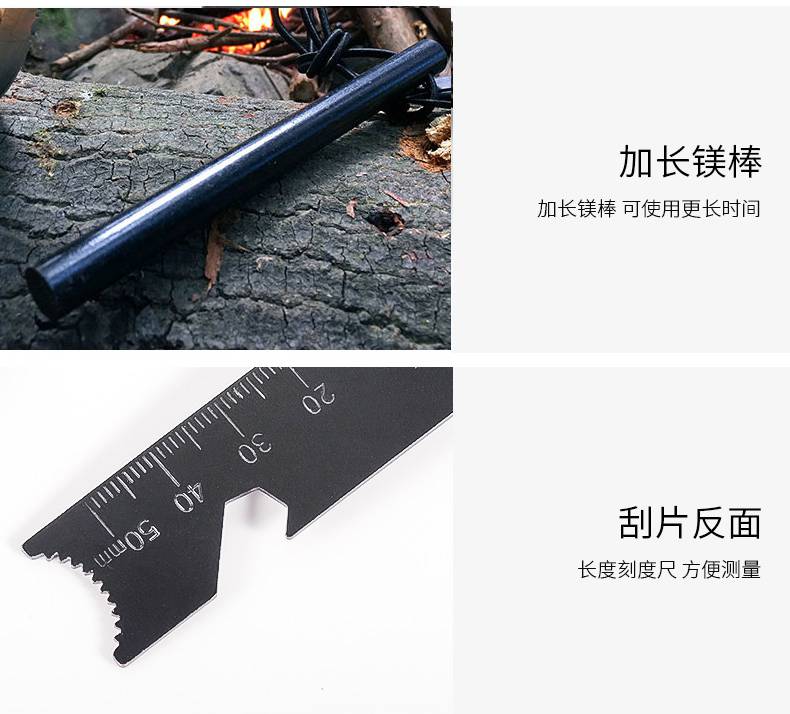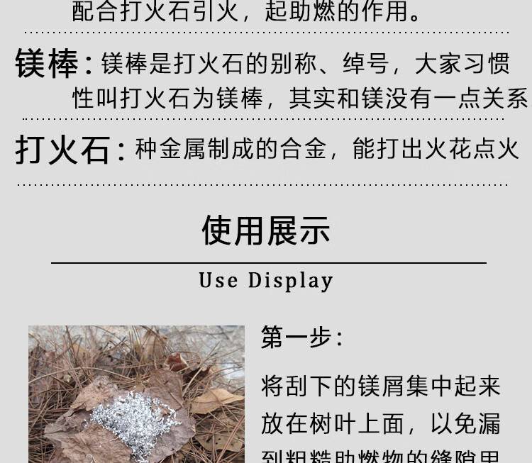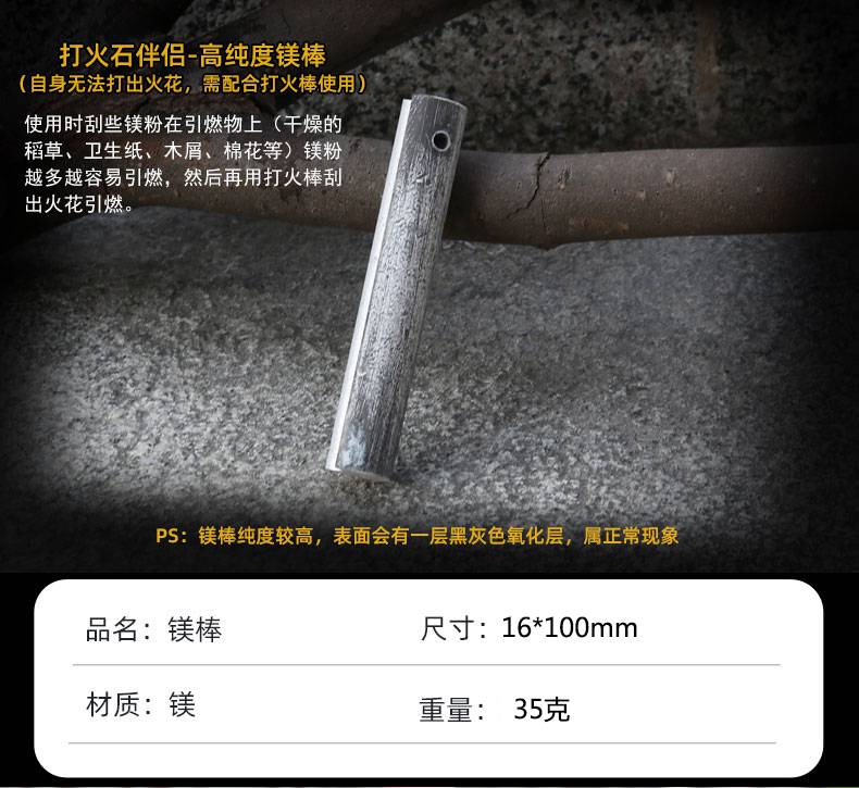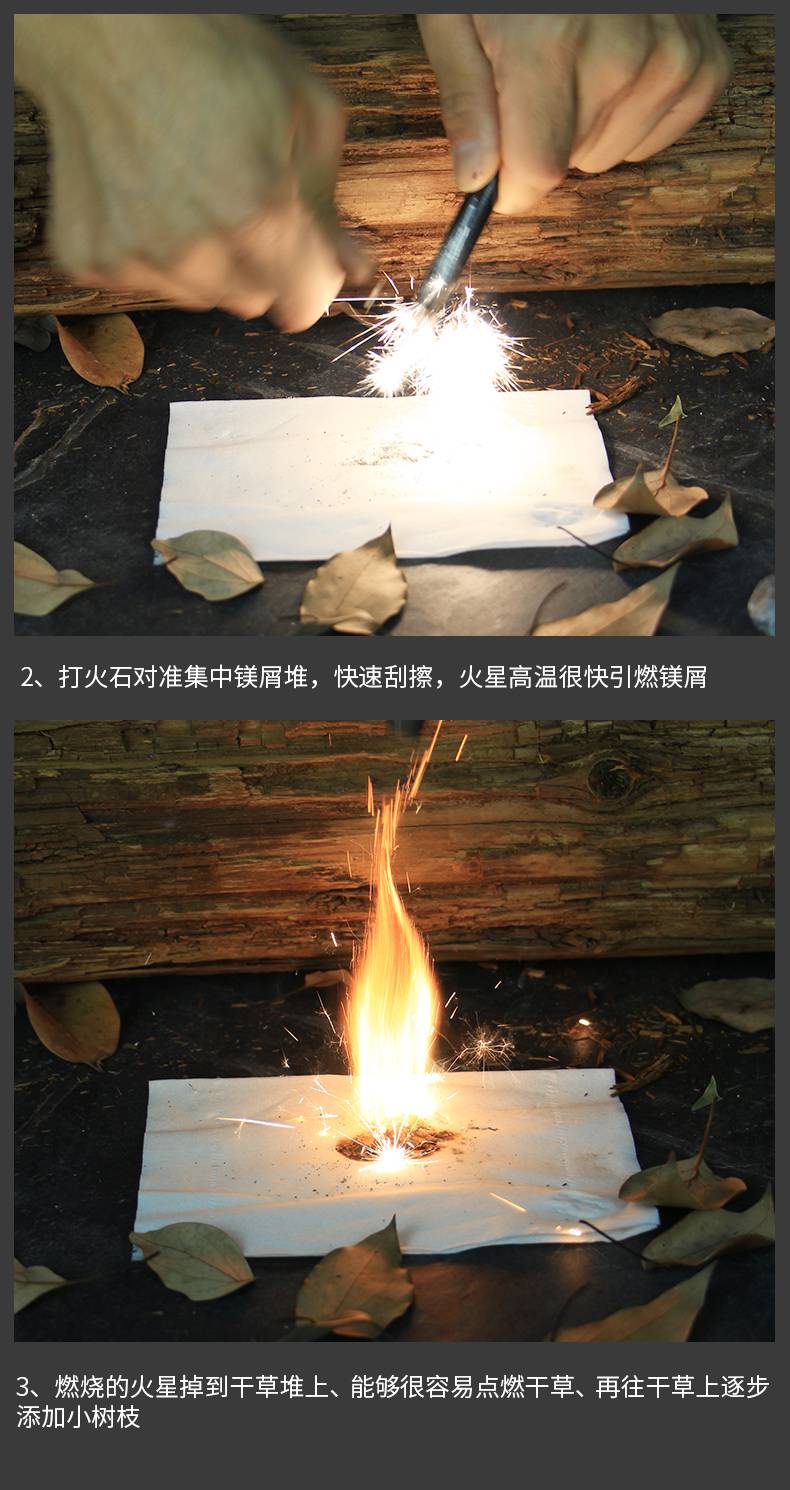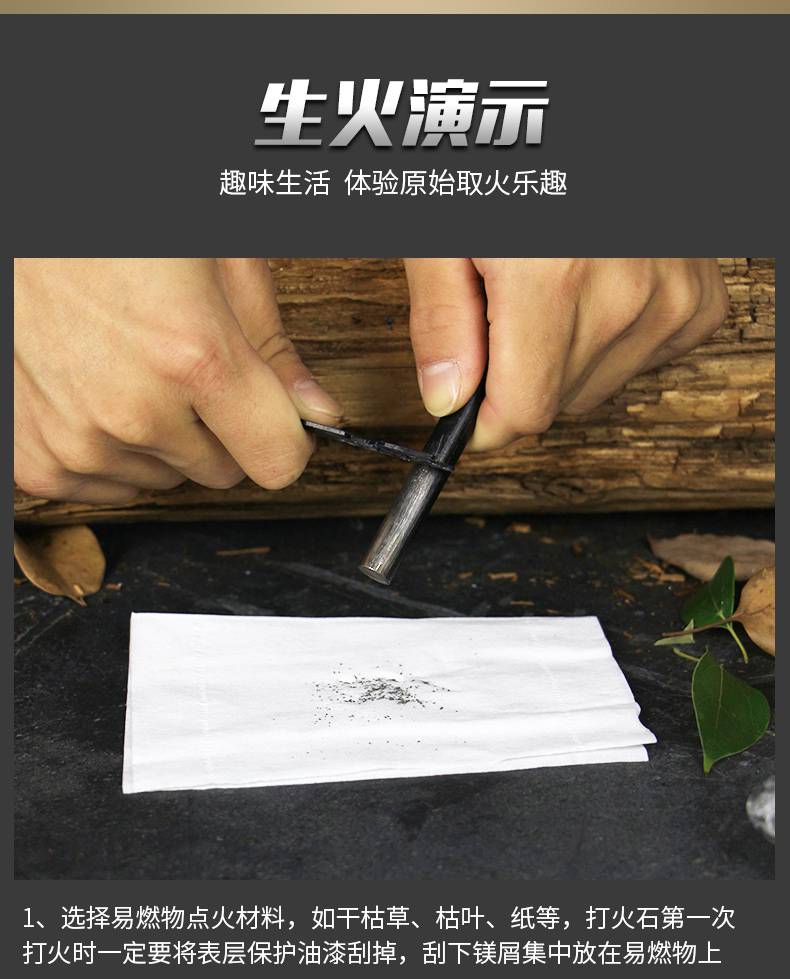 汛消援户外求生木头手柄取火镁棒牛皮绳大号打火石打火石工具
