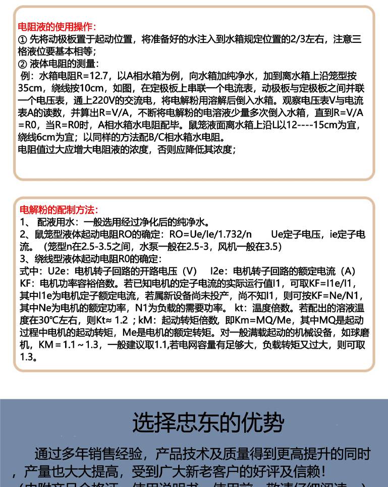 | 功能:调节阻值,使电机平稳起动 | 使用环境:适用于各种水阻柜,液体电阻启动柜 |