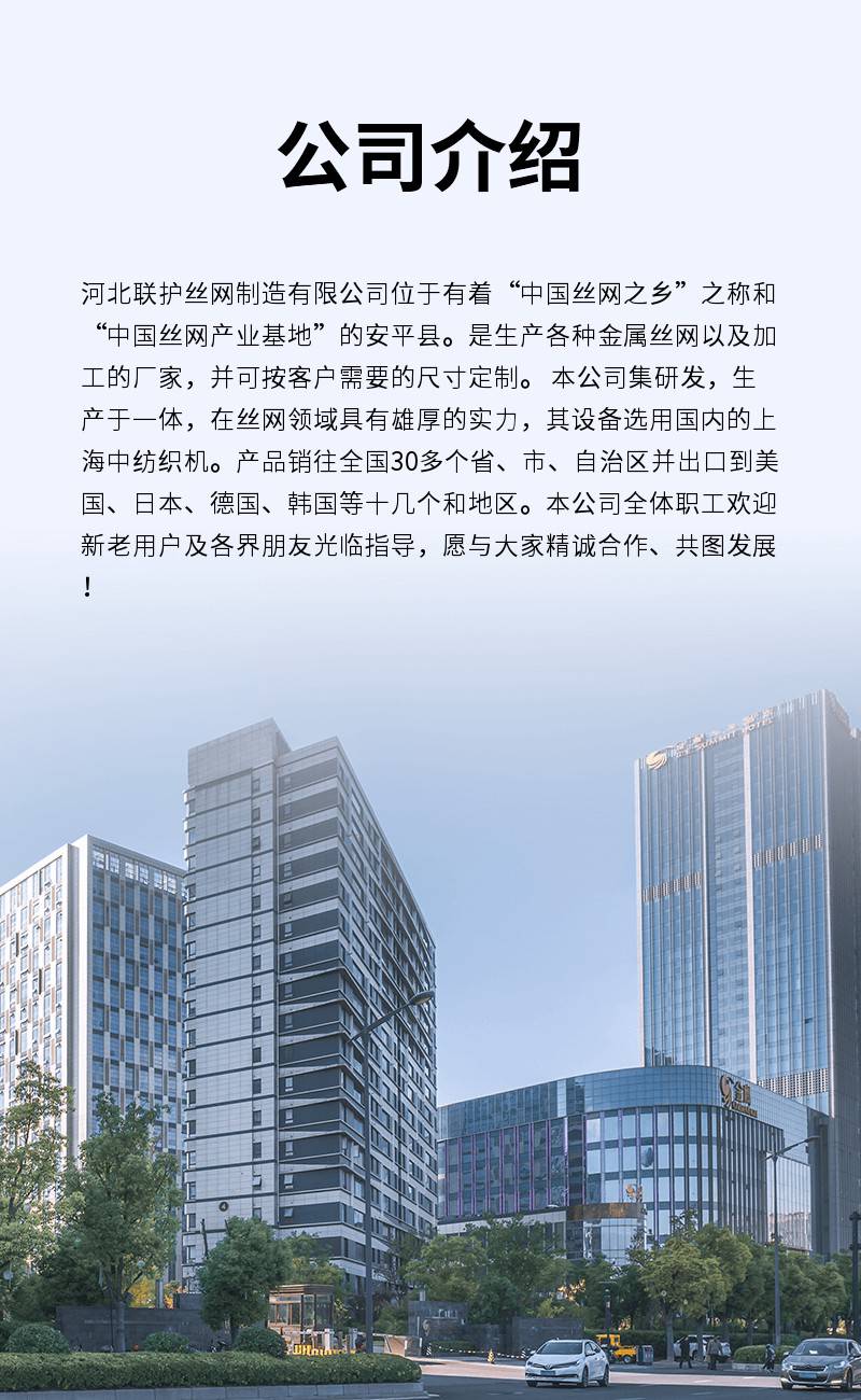 | 经营范围 | 金属丝绳及其制品制造。生产、销售:基坑护栏、井口防护网、电梯防护网、冲孔网、圆孔网、爬架网、护栏网、钢筋网片、建筑网片、石笼网、边坡防护网、防抛网、防风抑尘网、市政护栏、锌钢护栏、声屏障、隔离栅、钢格板、荷兰网。(依法须经批准的项目,经相关部门批准后方可开展经营活动) | ||