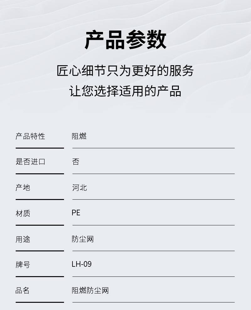 | 材质:PE | 用途:防尘网 | 牌号:LH-09 |