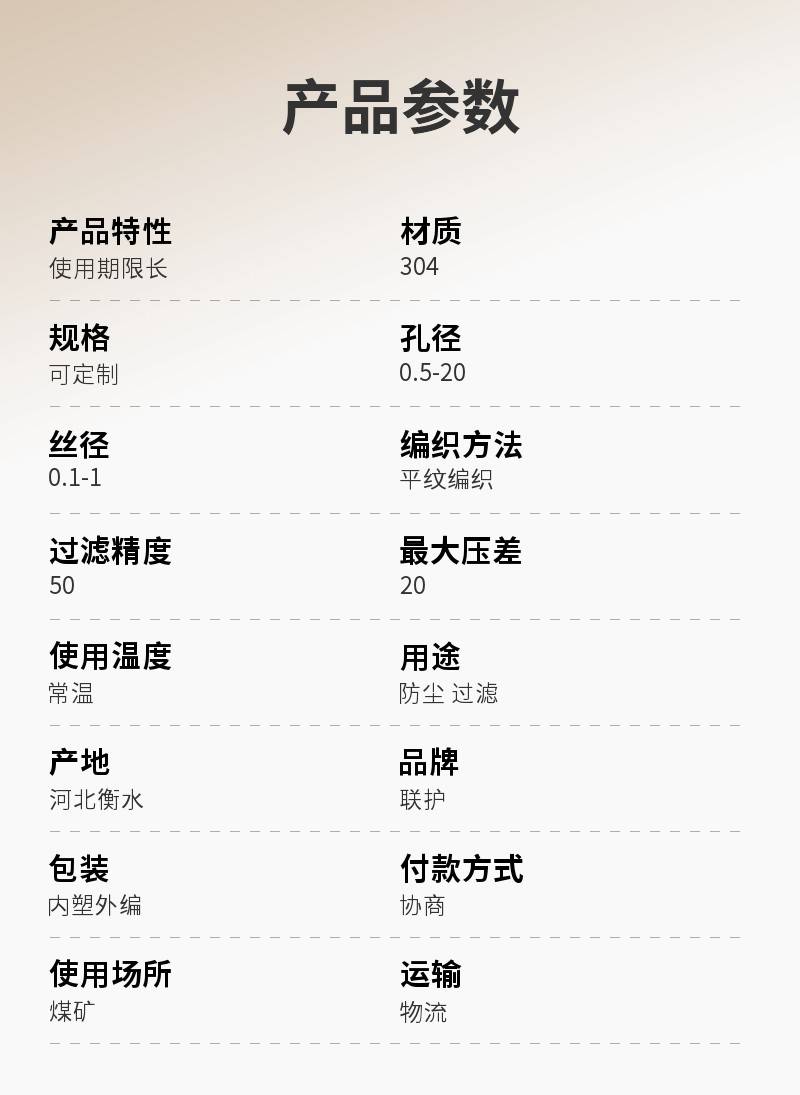 | 孔径:0.5-20mm | 丝径:0.1-1mm | 编织方法:平纹编织 |