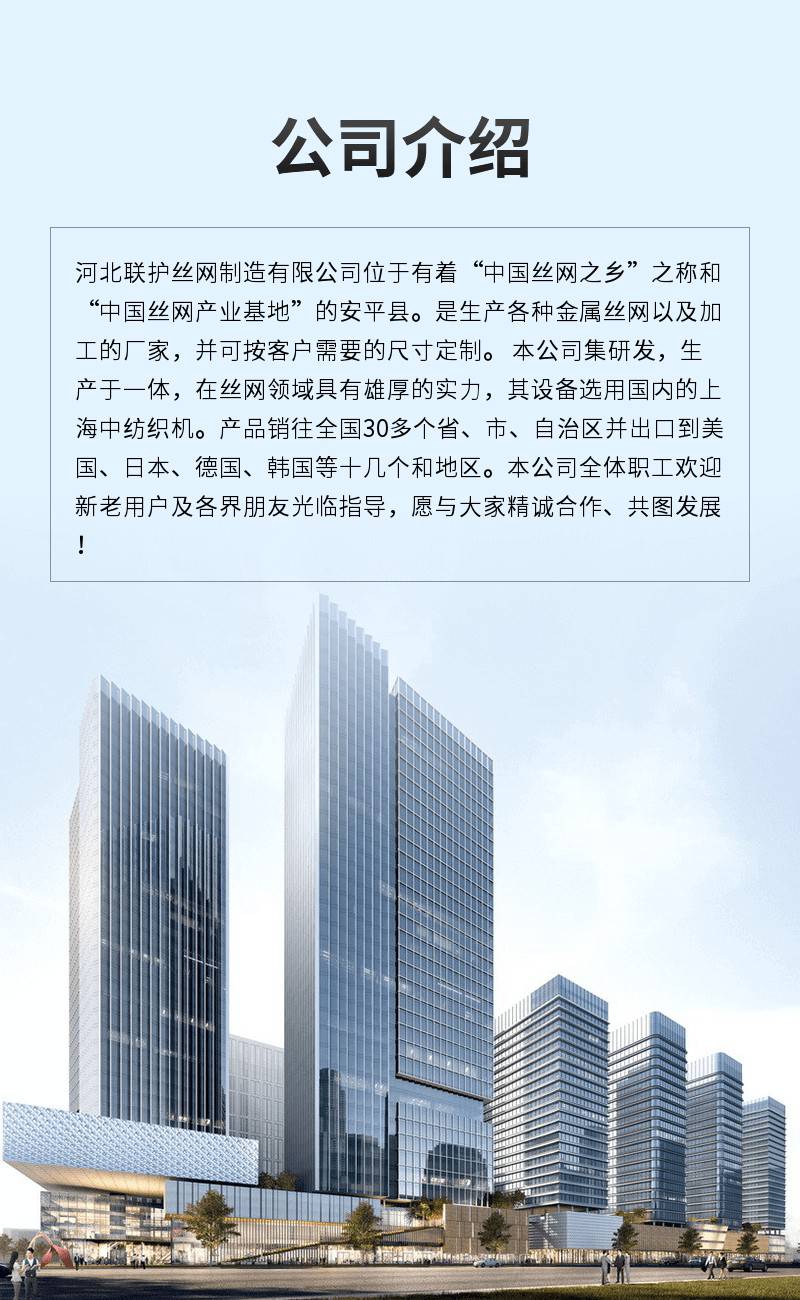 | 经营范围 | 金属丝绳及其制品制造。生产、销售:基坑护栏、井口防护网、电梯防护网、冲孔网、圆孔网、爬架网、护栏网、钢筋网片、建筑网片、石笼网、边坡防护网、防抛网、防风抑尘网、市政护栏、锌钢护栏、声屏障、隔离栅、钢格板、荷兰网。(依法须经批准的项目,经相关部门批准后方可开展经营活动) | ||
