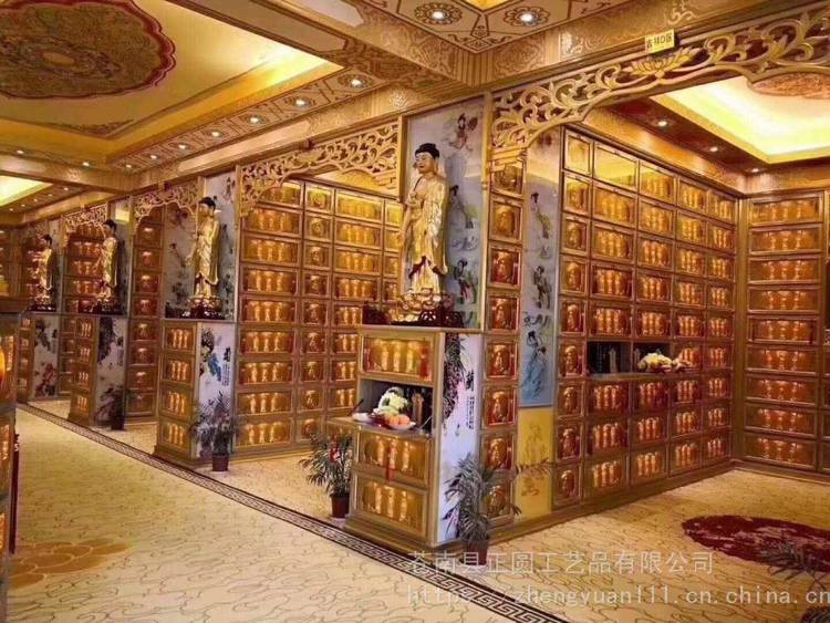正圆工艺有限公司是铝合金骨灰存放架、骨灰寄存箱架、殡葬用品、万佛墙、牌位楼等产品生产加工的公司,拥有完整、科学的质量管理体系。正圆工艺有限公司的诚信、实力和产品质量获得的认可。 公司的每个部门(业务企划部、开发设计部、雕塑(刻)部、木工部及箱架组装加工部等)都各显神通、各尽所能的為(公墓、陵园、殯仪馆、寺庙及骨灰堂等)提供的服务。 铝合金千佛龛、万佛龛、千佛墙选用经过电泳处理的铝合金材料,产品防火防潮,防腐;安装简单,产品环保,安装好后即可使用,不会有异味和有害物质产生;工艺美观,色彩逼真。各式花纹图案均可设计订制。如有特殊要求也可来图来样定做。确保褪亮、、线条流畅、整体美观 四格千佛墙采用了的冷扎镀模压成型,对产品表面进行了去锈、除油、磷化等多道加工工序制成,并且使用国内外的静电喷塑,进行了高温塑化,所以质量和品质都是非常有保障。