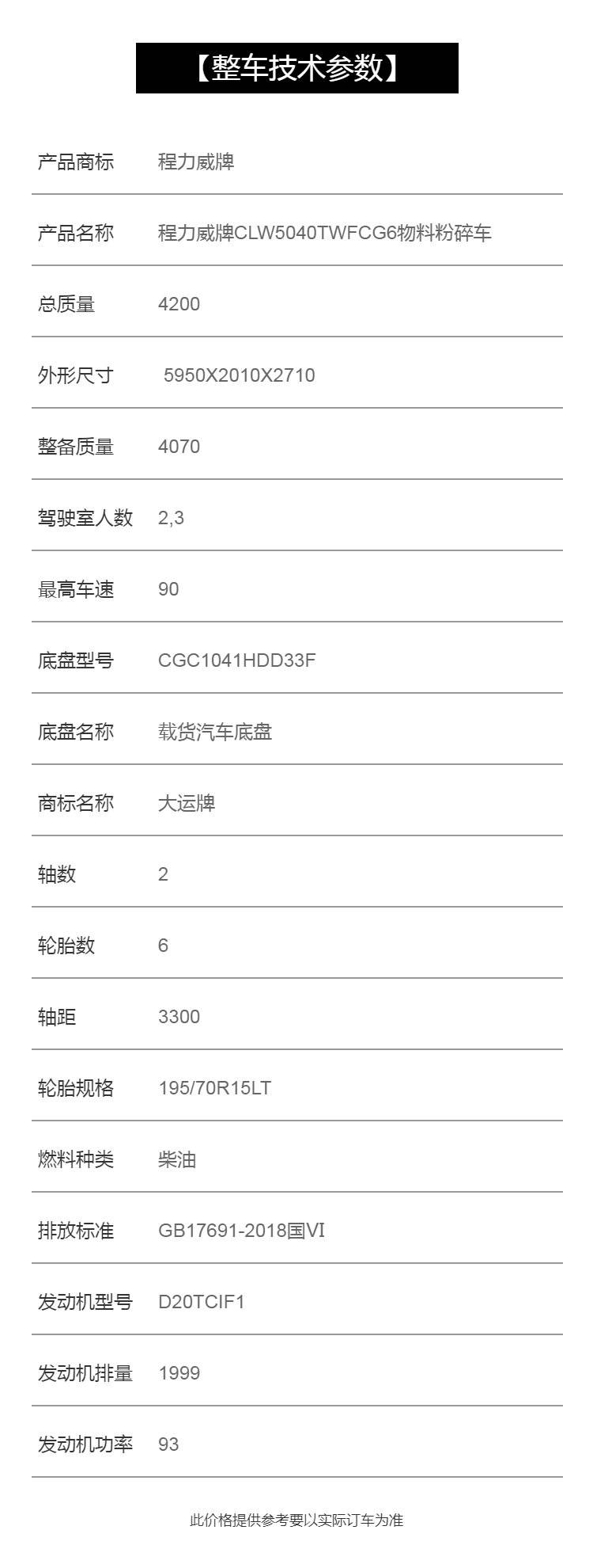 | 底盘型号:CGC1041HDD33F | 轮胎规格:195/70R15LT | 是否支持加工定制:是 |