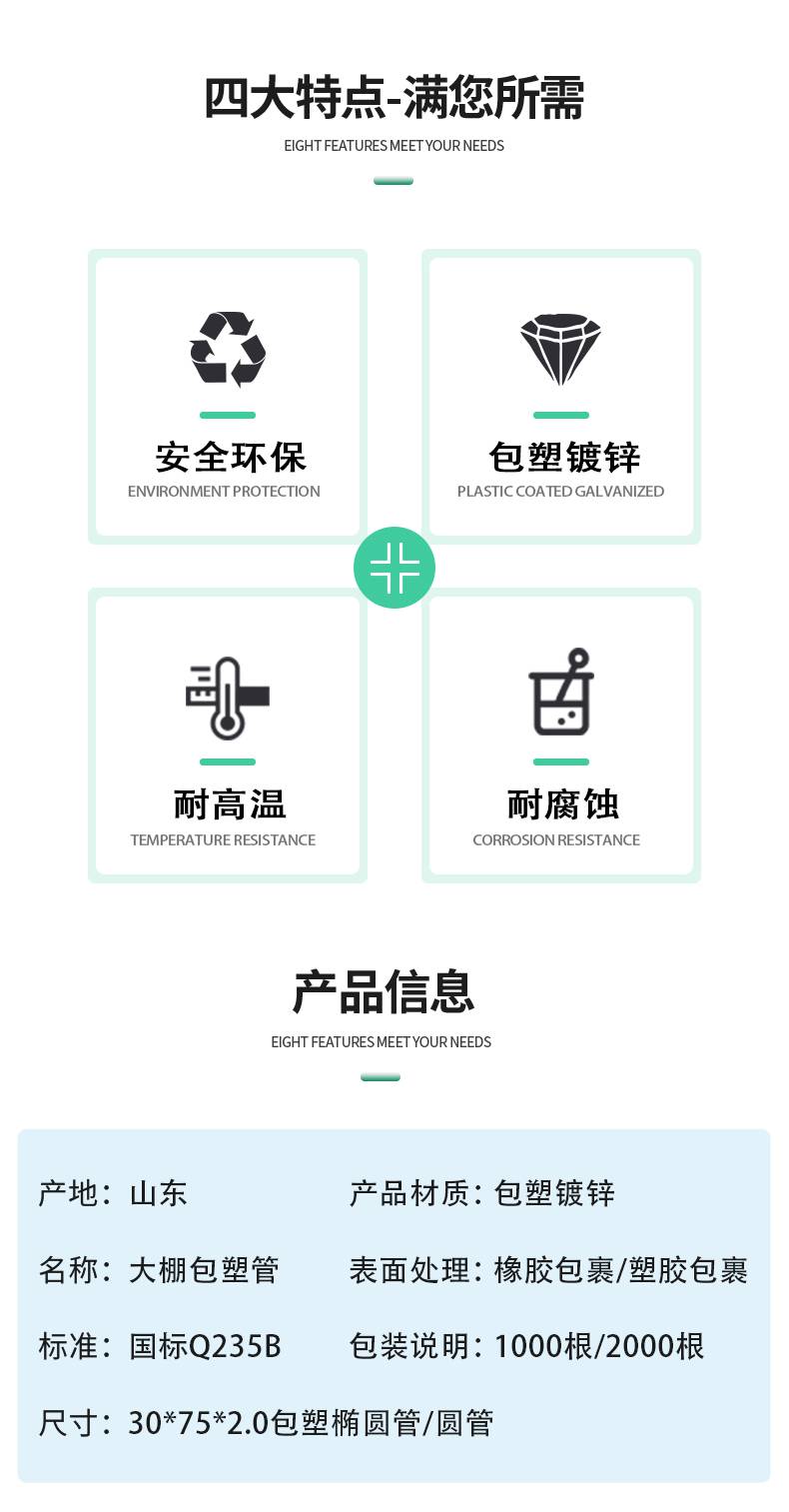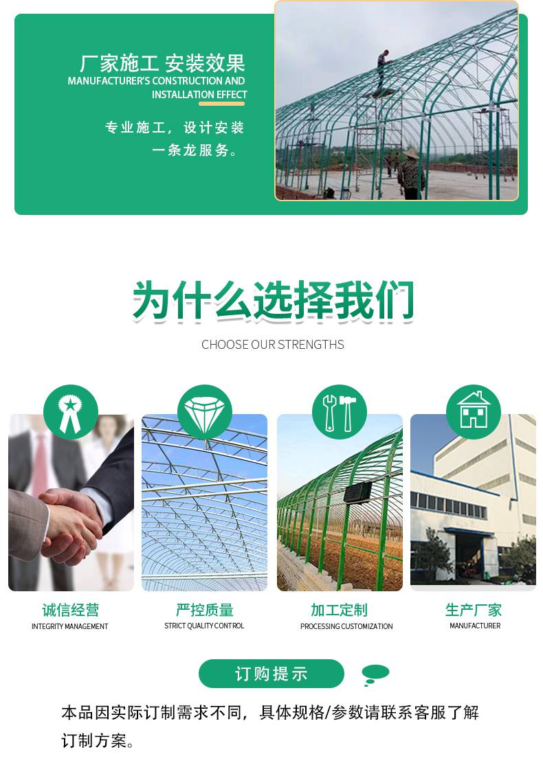 | 基础:打孔插地 | 跨度:6.4m、8.0m、9.6m、10.8m、12.0m | 棚膜厚度:8-12丝 |