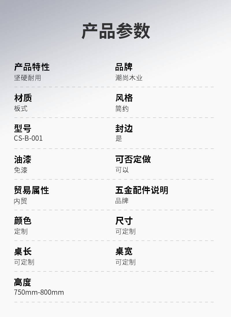 | 风格:简约 | 型号:CS-B-001 | 封边:是 |