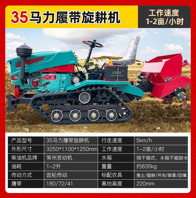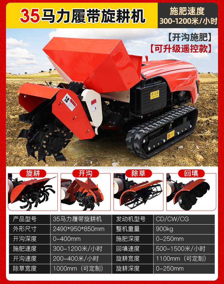 | 履带材质:橡胶钢丝履带 | 施肥速度:1100m/h | 启动方式:电启动 |