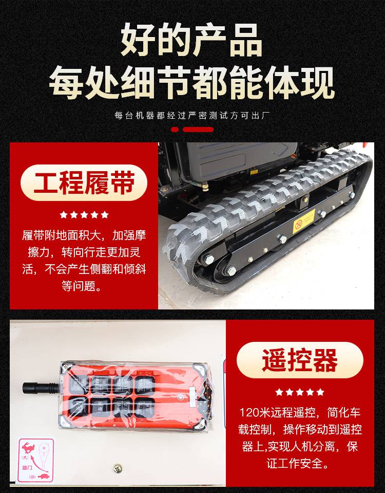 | 控制方式:遥控式/座驾式 | 行走方式:履带式 | 发动机类型:柴油 |