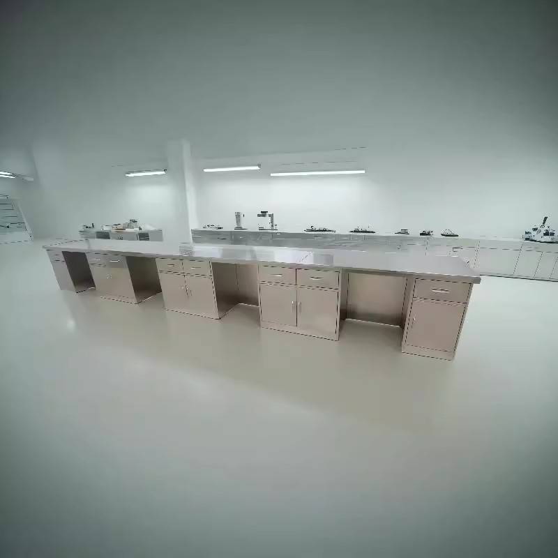 柜体1.0mm304不锈钢板,经数控激光下料,数控折边成型,气体保护焊接而成,三节静音滑轨,不锈钢合页。台面根据不同实验要求,可采用不锈钢、实芯理化板、环氧树脂板、陶瓷面板等。