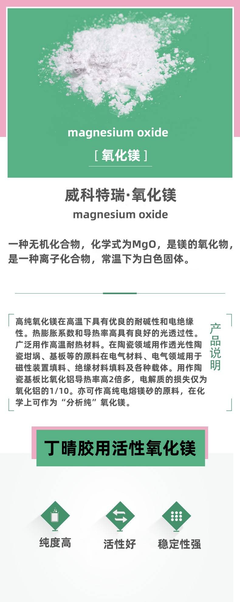 | 产品特性:高活性 | 产品名称:氧化镁 | 型号/规格:001 |