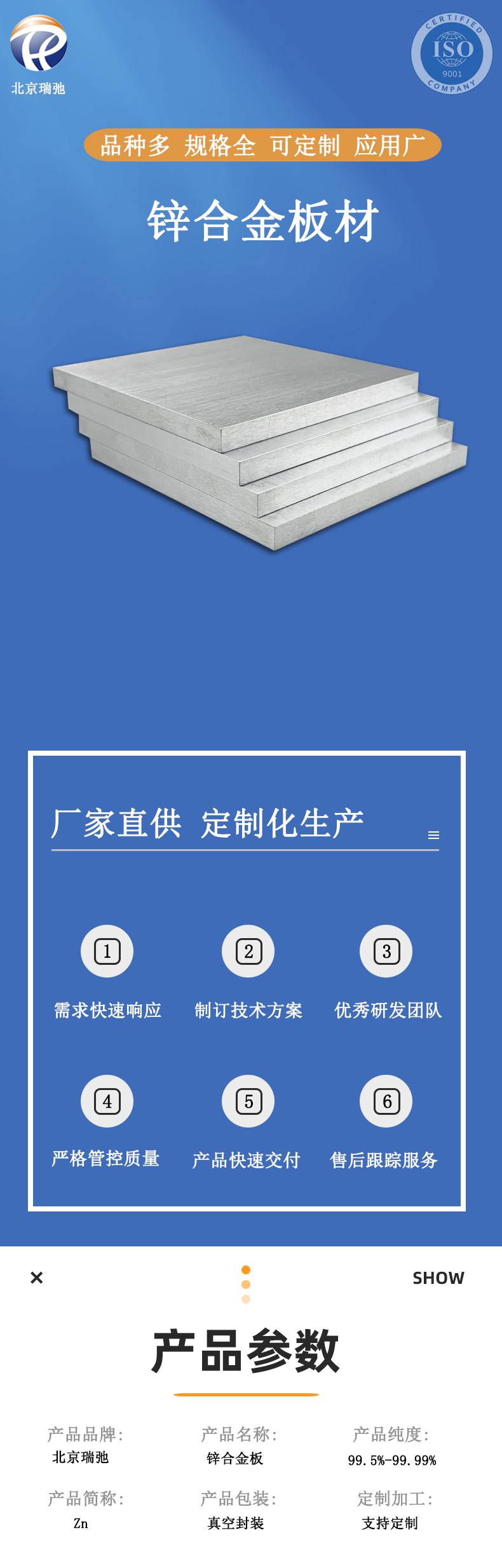本页信息为河北瑞弛新材料有限公司为您提供的"高纯锌合金板 99.95%Zn 真空感应熔炼合金 锌靶材"产品信息,如您想了解更多关于"高纯锌合金板 99.95%Zn 真空感应熔炼合金 锌靶材"价格、型号、厂家请联系厂家,或给厂家留言。 进入店铺