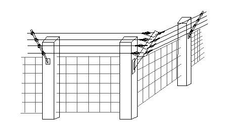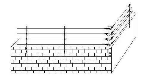 5、 围栏线应采用分段安装的方式固定,同一条直线或同一防区建议分为一段。不在同一条直线上的可以分几次安装。这样施工清晰明朗,循环有序。