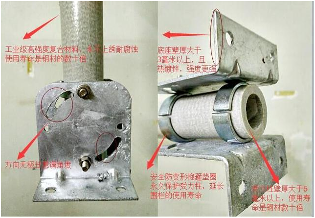 根据上图可知,欧脉电子围栏受力柱底座有左右俩个底座构成,采用80膨胀螺丝4孔固定,且角度可以万向无极调角度(可选择90度直立安装也可以选择如图的倾斜安装),中间添加圆形抱箍垫圈,外部添加螺帽和垫片,***了围栏的整体强度。另外底座的整个厚度达到3毫米以上且是热镀锌不上绣,使用寿命***可达到5年以上。