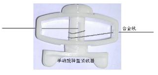 直接把合金线穿过紧线器中间的孔(如下图),主要的作用是把合金线拉直,以免合金线太松影响总体美观,另外太松容易造成俩根线搭在一起照成短路(一旦短路就会进行报警,属于误报。电子围栏的原理是不会产生误报的)
