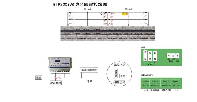 防区主机和电子围栏前端接好后,那就需要通上电进行测试了,主要是测试短路或者短路报警还是不报警。如果测试可以正常报警,***和末端的报警主机进行对接。