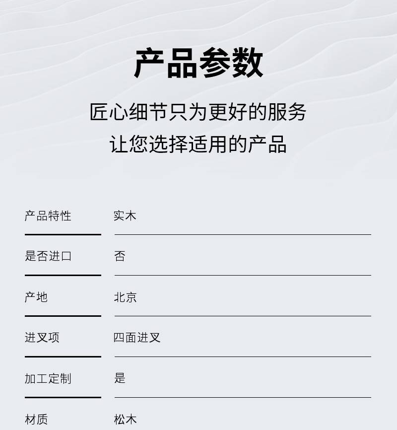 | 进叉项:四面进叉 | 加工定制:是 | 材质:松木 |